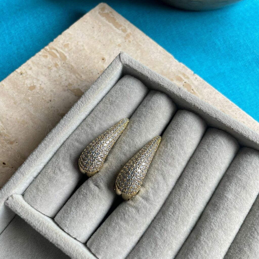 Descubra a sofisticação das argolas de gota cravejadas com zircônias. Cada peça é uma expressão de elegância e brilho. Perfeitas para qualquer ocasião, estas joias versáteis adicionam um toque luxuoso ao seu visual. Explore nossa coleção agora e adquira o brilho deslumbrante das zircônias.