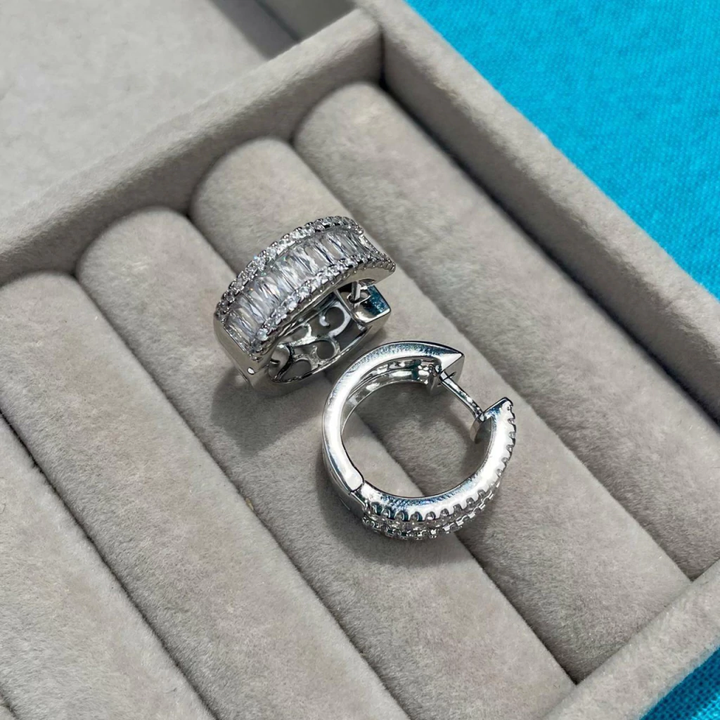 Descubra a beleza inigualável do nosso Brinco de Argola, banhado em ródio e adornado com zircônias cristais.