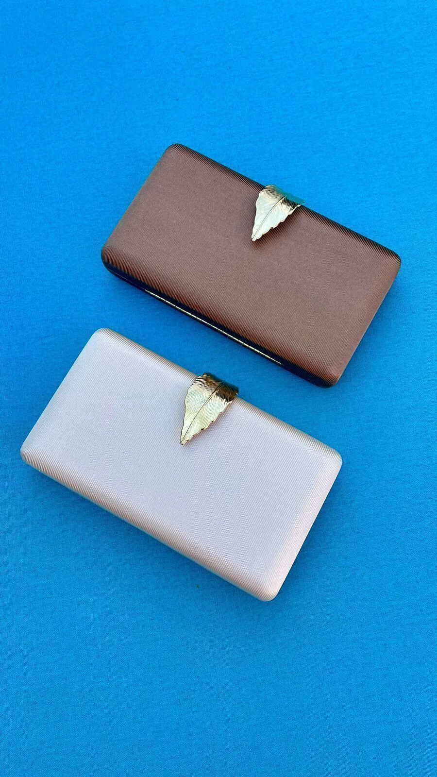 A Clutch Folha Dourada - Marrom é o acessório perfeito para quem busca elegância e praticidade em um só item. Com design sofisticado, seu fecho em formato de folha traz um toque único e delicado ao visual. Compacta e versátil, combina facilmente com looks para eventos especiais ou ocasiões do dia a dia.