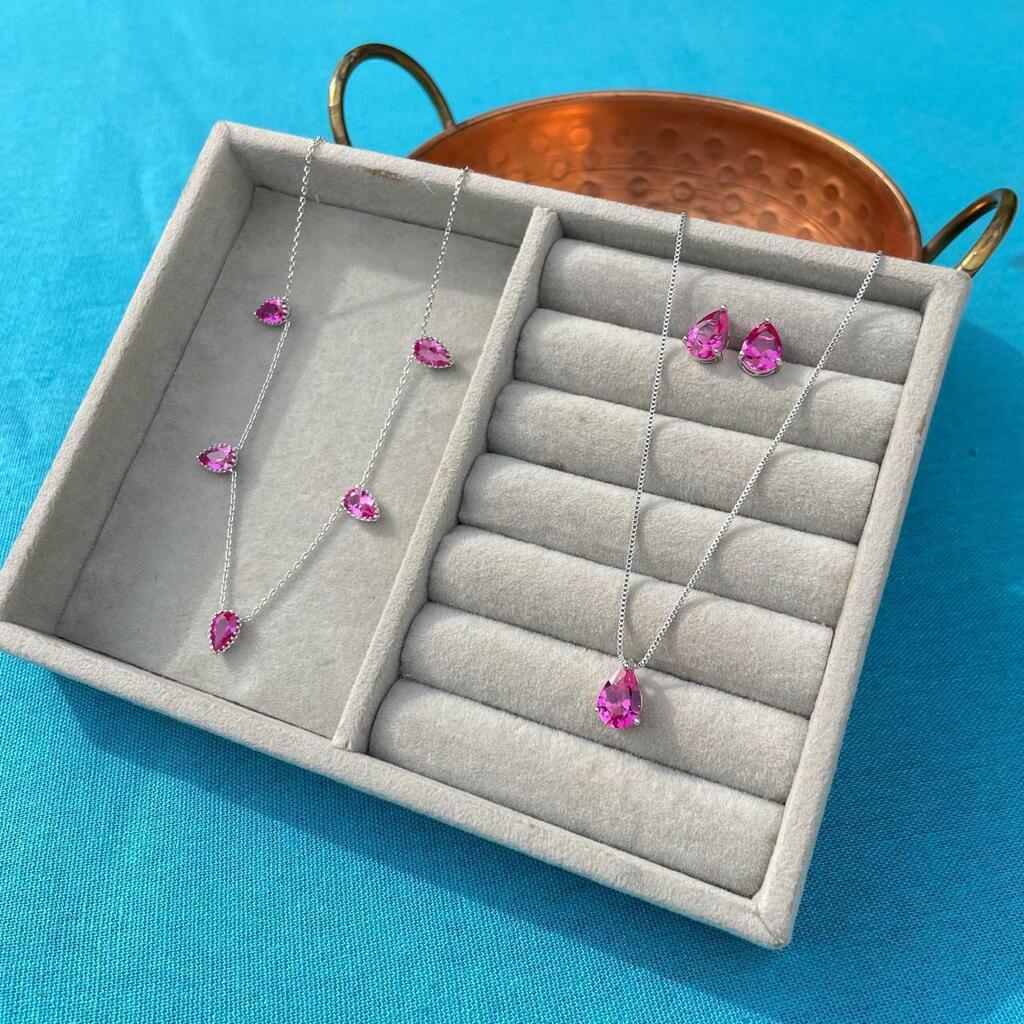 O colar 5 gotas safira pink é a peça que faltava para dar um charme todo especial ao seu look! Com cinco gotinhas de safira pink que capturam a luz de forma deslumbrante, ele traz um toque de cor e sofisticação para qualquer ocasião. Ideal para um jantar romântico ou para brilhar em festas, esse colar é versátil e cheio de estilo.