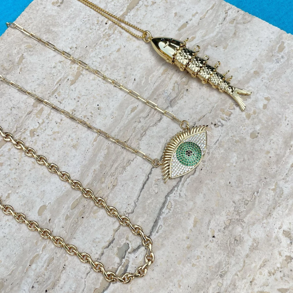 O Colar Peixe folheado a ouro é a escolha perfeita para quem ama um toque de elegância e movimento! Com um pingente de peixe articulável que traz vida ao acessório, acompanhado de uma corrente longa ideal para compor mix de colares, ele é o destaque que faltava no seu visual.