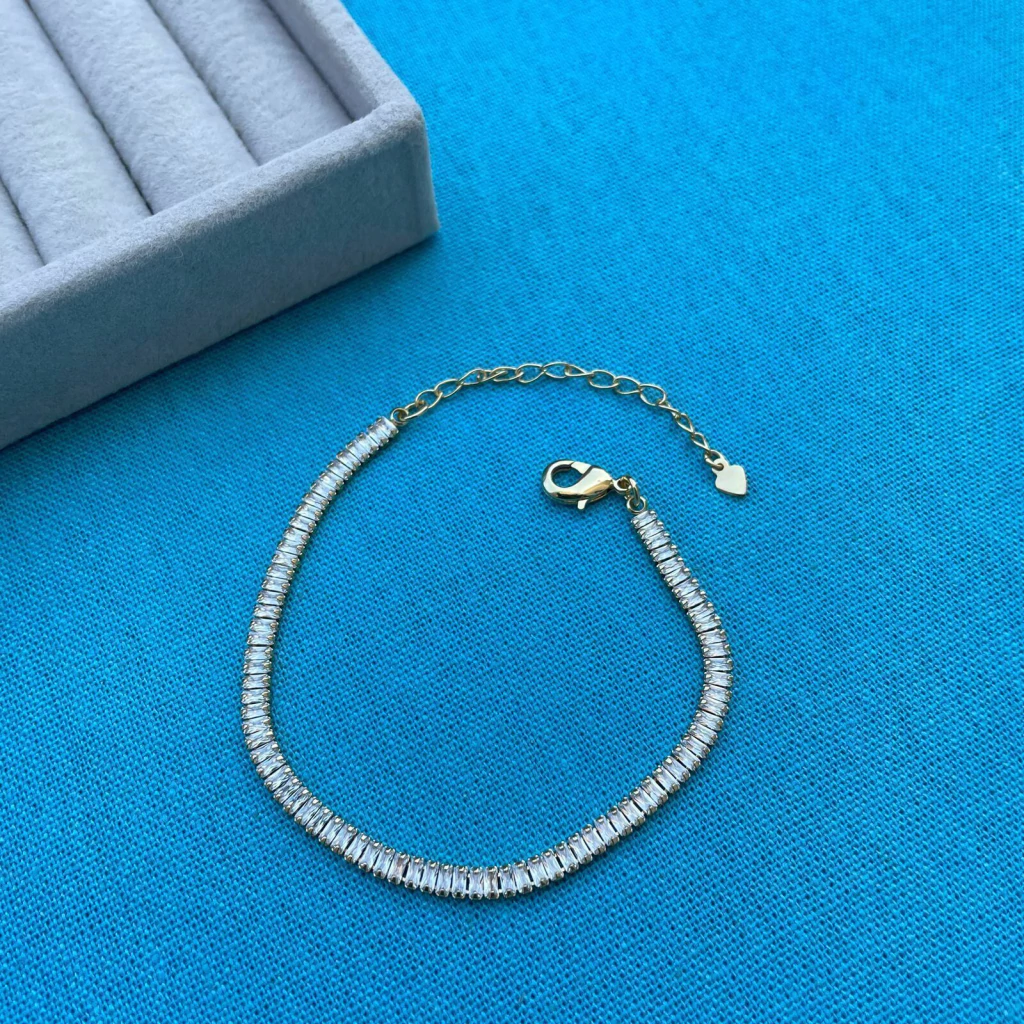Pulseira Riviera: delicadeza e sofisticação em cada detalhe. Esta pulseira folheada a ouro é o acessório perfeito para quem busca um toque de elegância sutil e moderno. Seu design delicado valoriza o pulso com um brilho único, ideal para ocasiões especiais ou para o dia a dia com estilo.